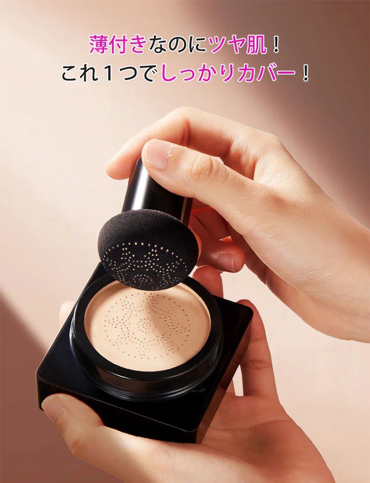 【クッションファンデーション】高カバーなのに薄付き×ツヤ肌、水や汗に強い!メイクが崩れにくい!2点3550円